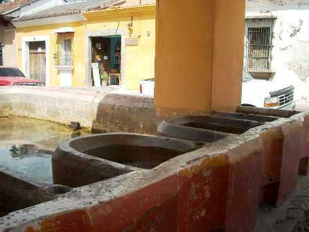 Public tanks for washing clothes. | A coffee plant | and a milk fountain? |